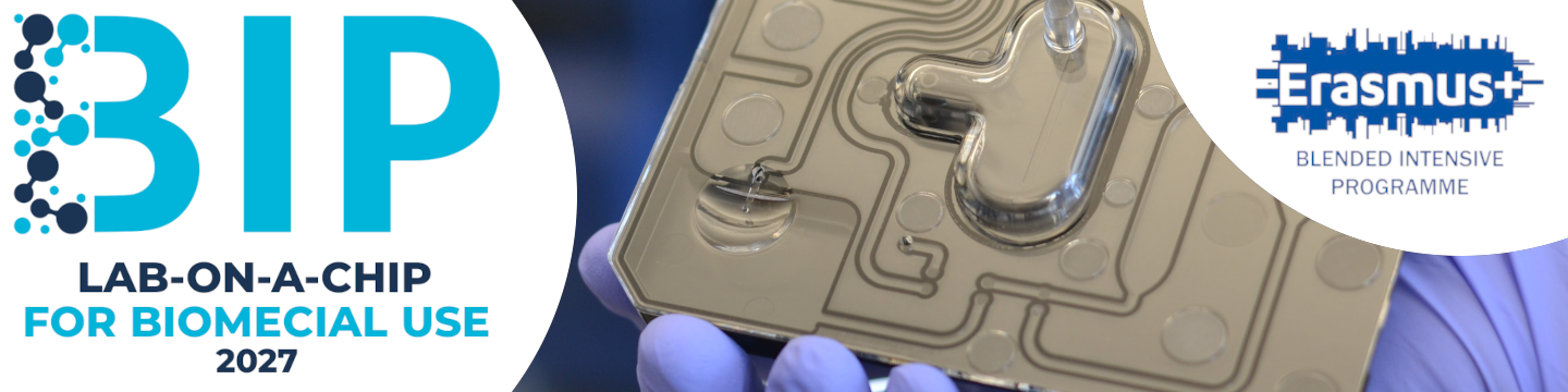 This Erasmus+ Blended Intensive Program offers a hands-on journey into the development of Lab-on-a-Chip devices, guiding participants from initial concept to a fully functional prototype. Participants will gain practical skills in microfluidic system design, flow modeling using finite element simulations, and prototype fabrication, employing techniques such as photolithography, stereolithography, laser ablation, and 3D printing. The program also addresses prototype testing, parameter measurement, and system validation, providing a comprehensive overview of the complete development process in an international and collaborative learning environment.